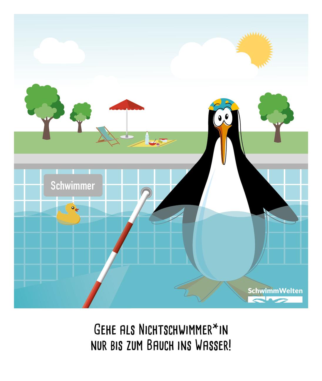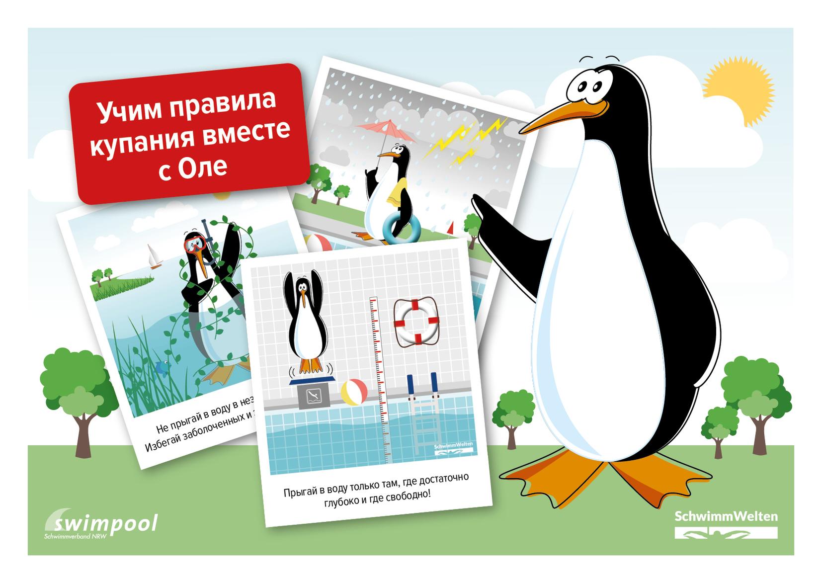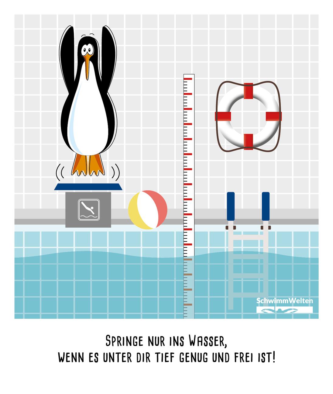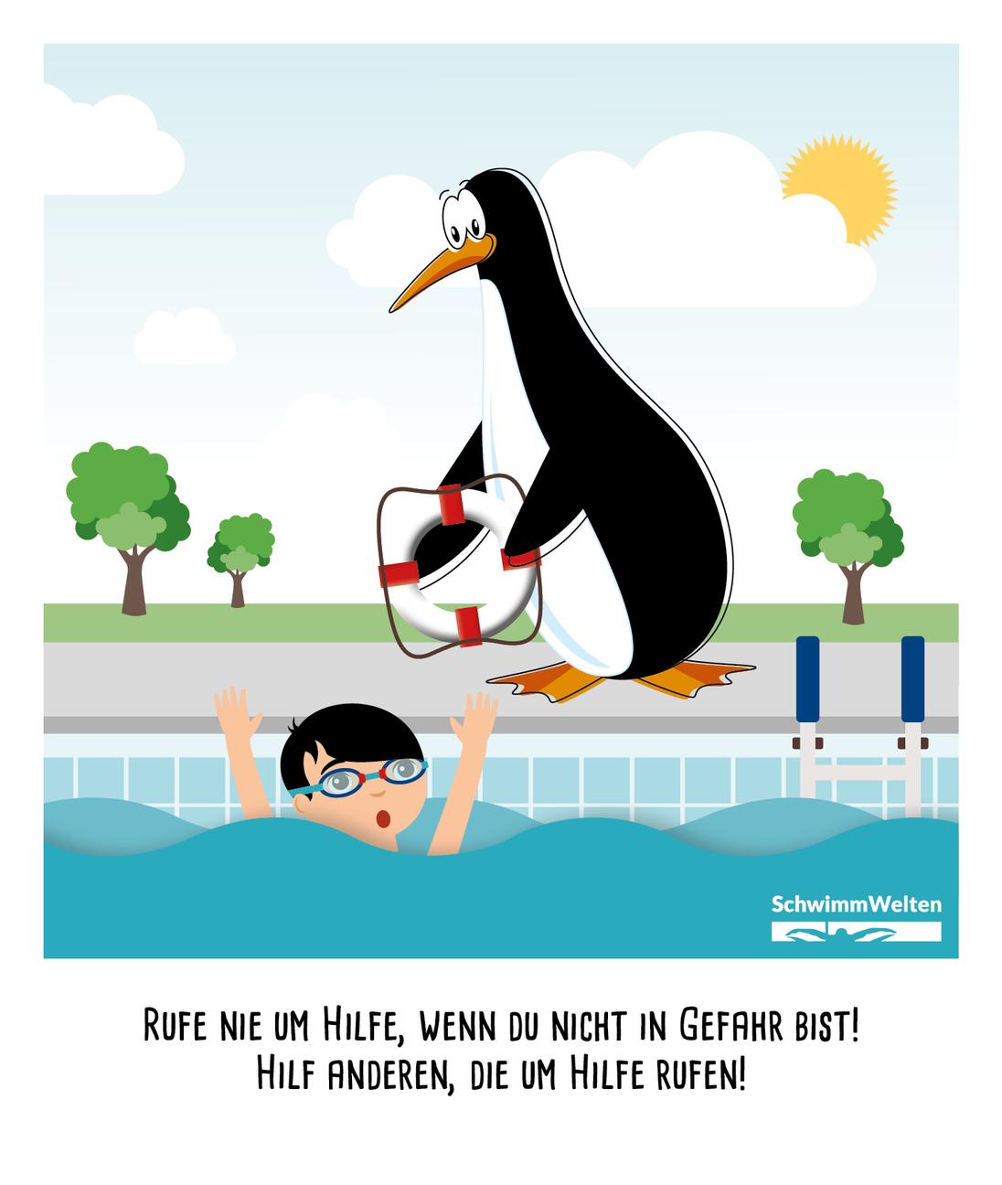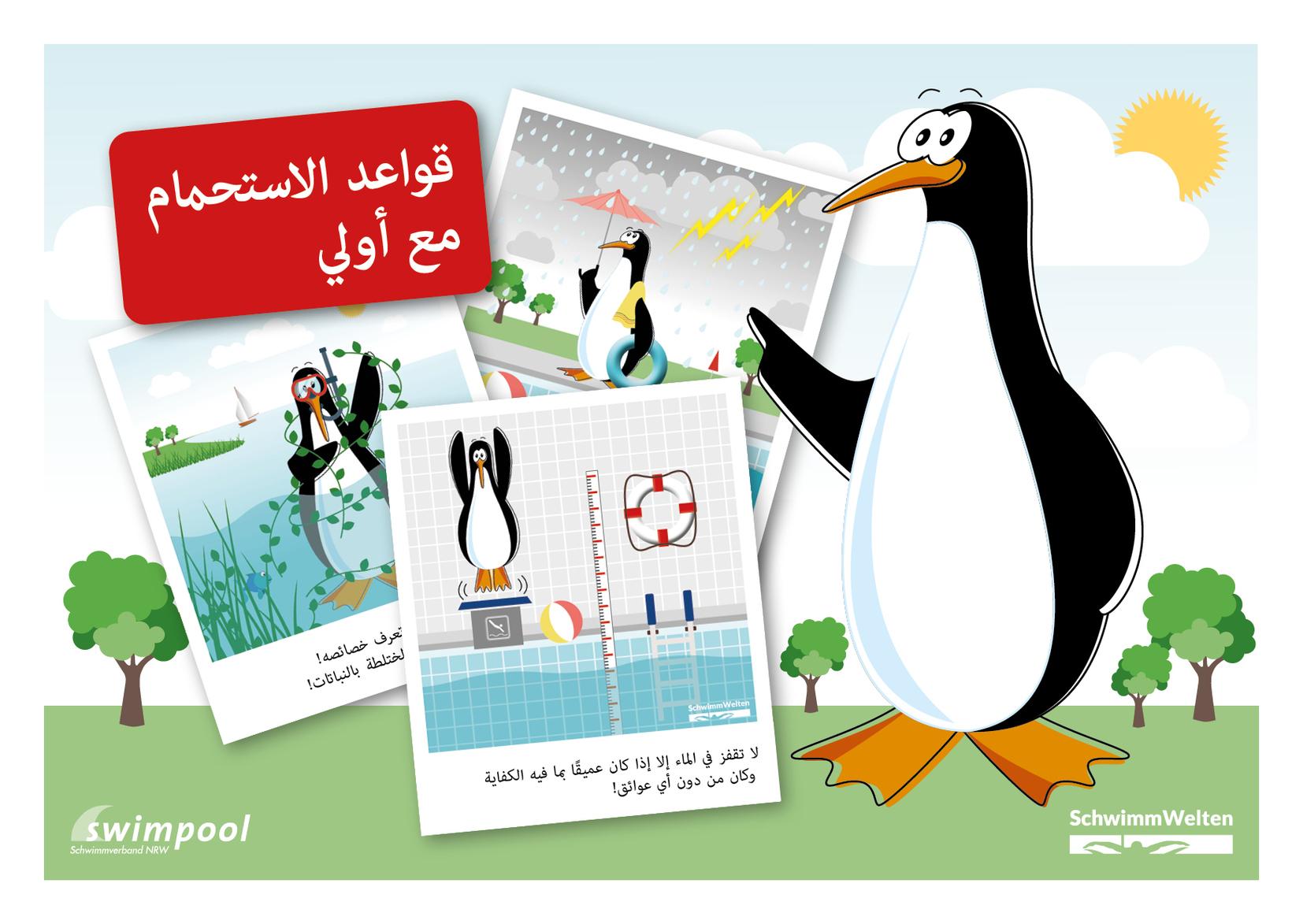 Hier findet ihr die wichtigsten Baderegeln, präsentiert von Pinguin Ole, dem Maskottchen des Schwimmverbandes Nordrhein-Westfalen.