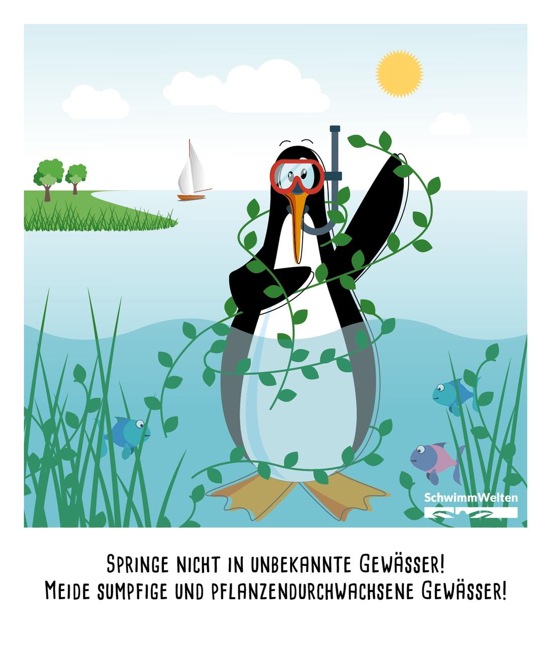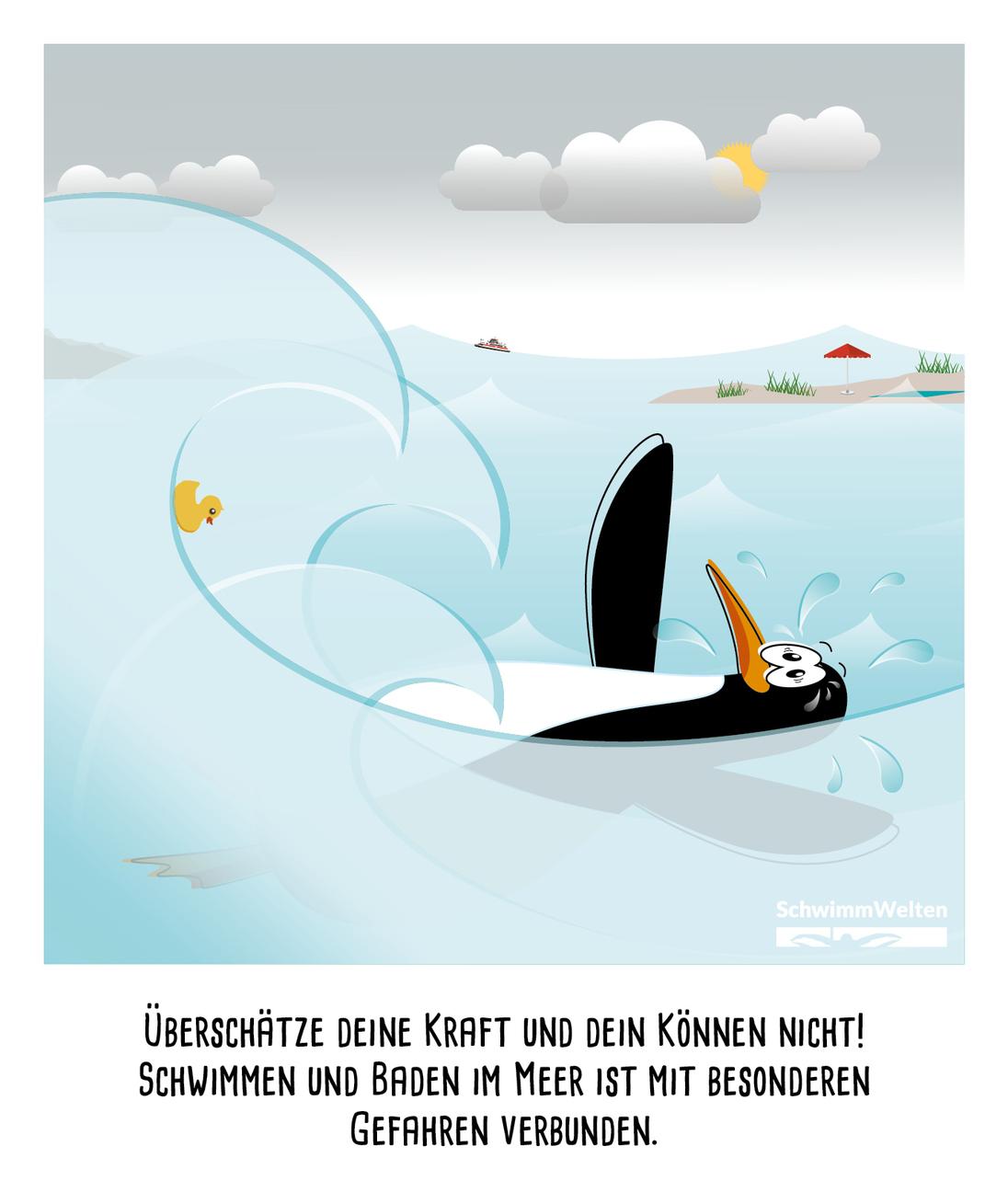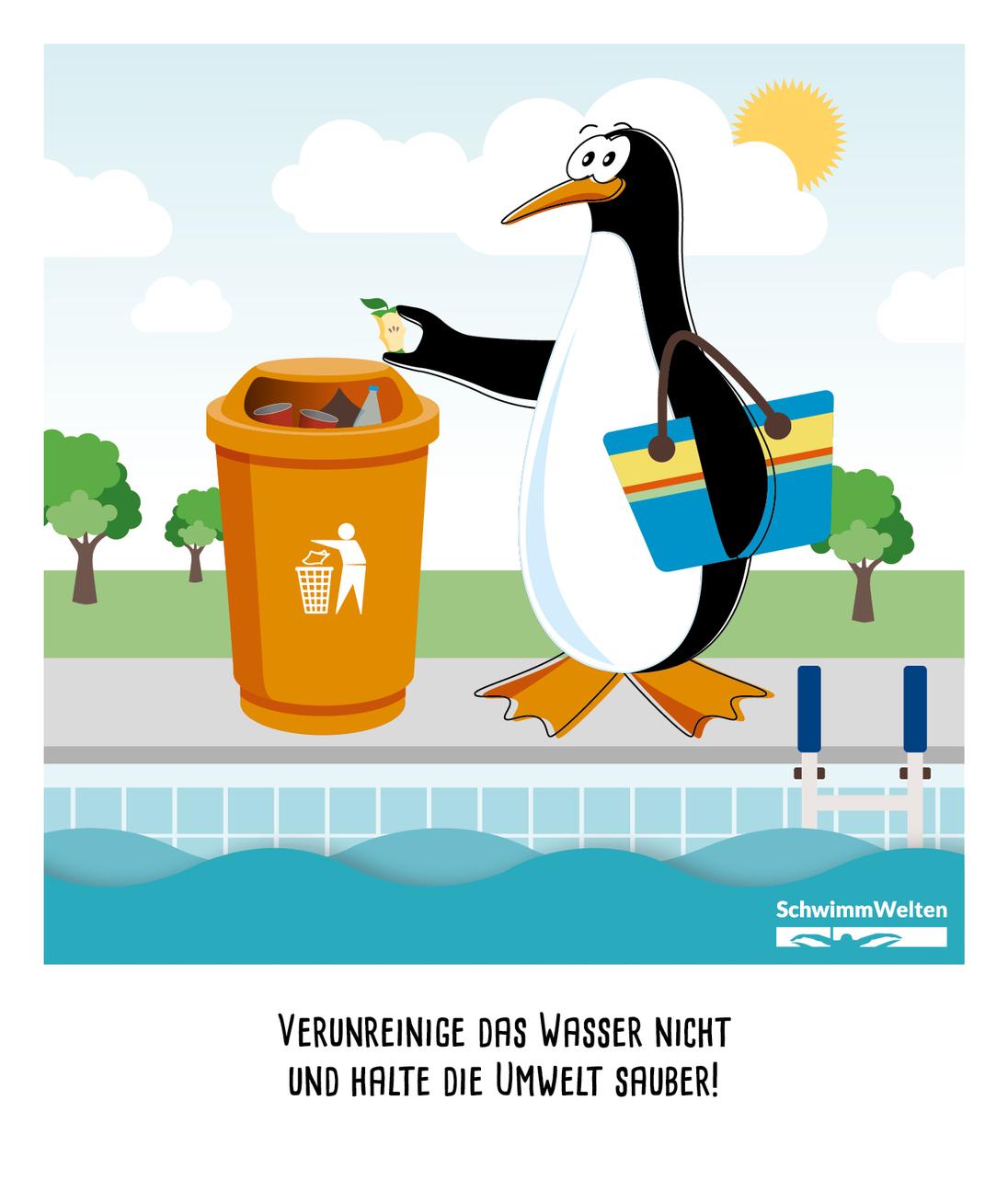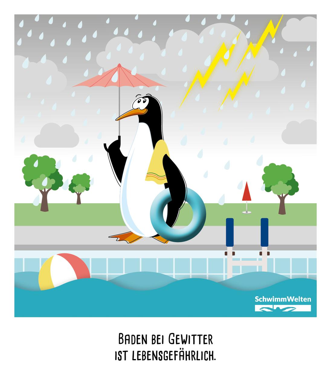 Hier findet ihr die wichtigsten Baderegeln, präsentiert von Pinguin Ole, dem Maskottchen des Schwimmverbandes Nordrhein-Westfalen.