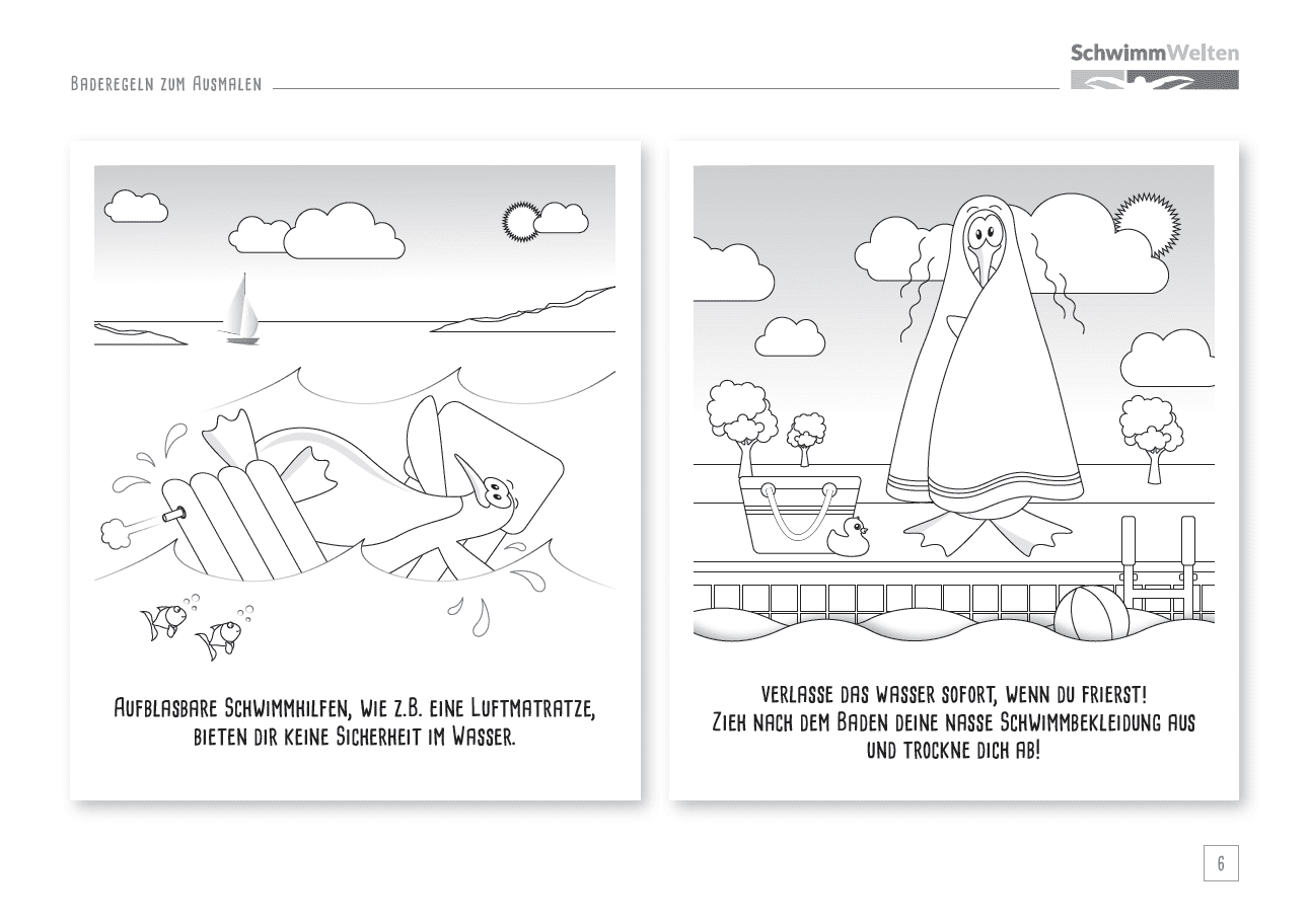 Baderegeln in der Zusammenfasssung und zum Ausmalen